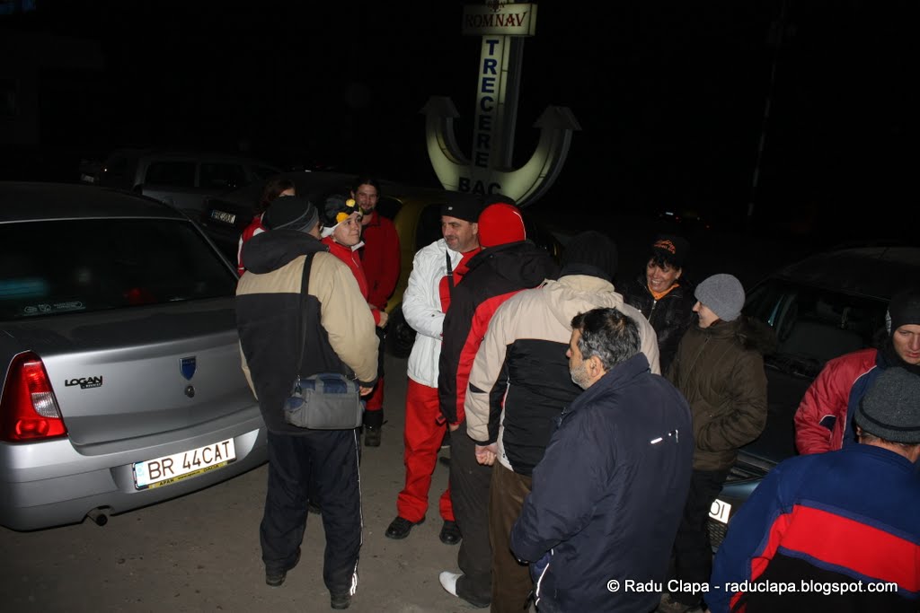 La 07.06 au sosit Doina și Dan, ne-am îmbarcat și după o mică escală pe la „General” de unde i-am luat pe Cătălin și Cătălina, am pornit spre Brăila, deoarece acolo, la trecerea cu bacul, era stabilită întâlnirea cu restul participanților. Cu un sfert de oră înainte de ora 8 ajungeam la locul stabilit unde, după o mică pauză în care ne-am salutat și redistribuit în mașini, am urcat în bac.