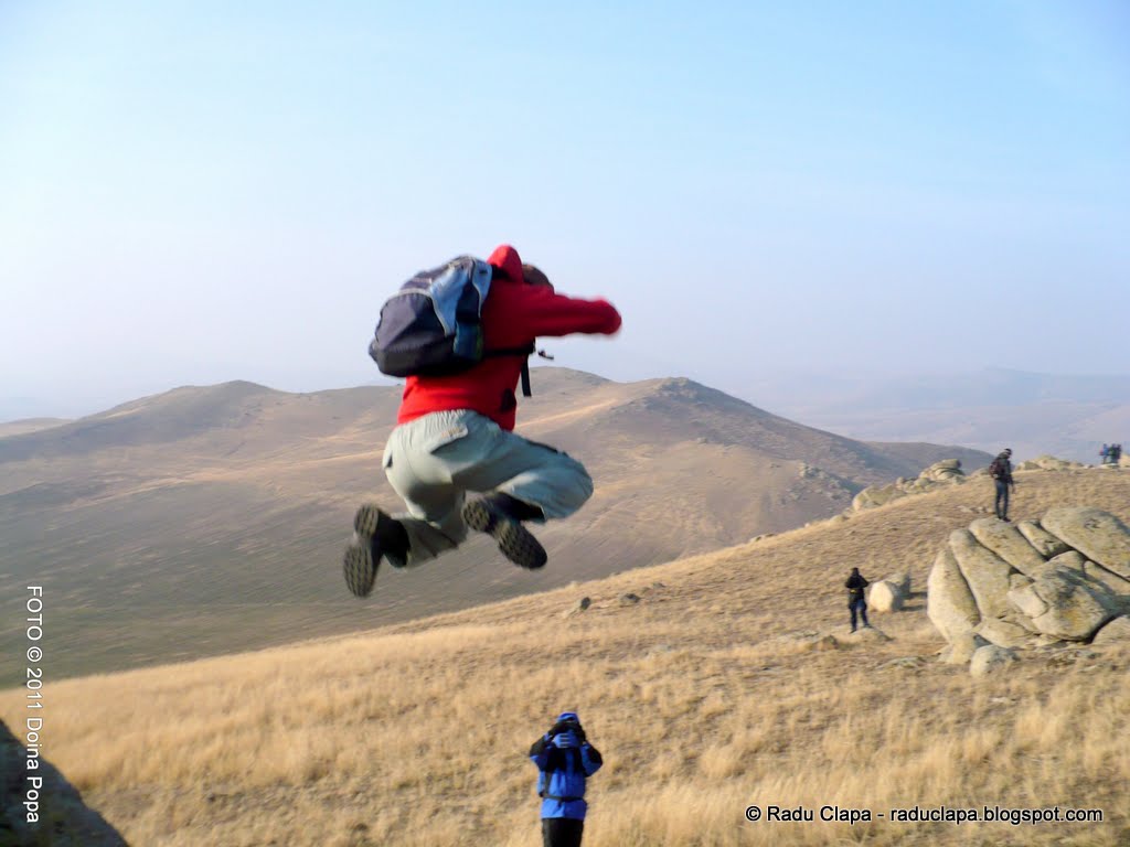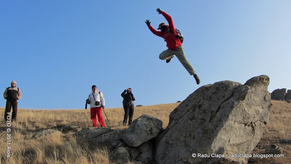 Iar în poza de mai sus, făcută de Doina, îl vedeți și pe Alois, cu minunata cameră în mână. (credeți că am lăudat-o prea mult? neah!). În depărtare se vede Mircea, cățărat și el pe o piatră… la momentul saltului vă spun sincer că habar nu aveam unde se află. Vedeți? E atât de fain să afli ce se întâmpla în jurul tău când tu te concentrai pe altceva.