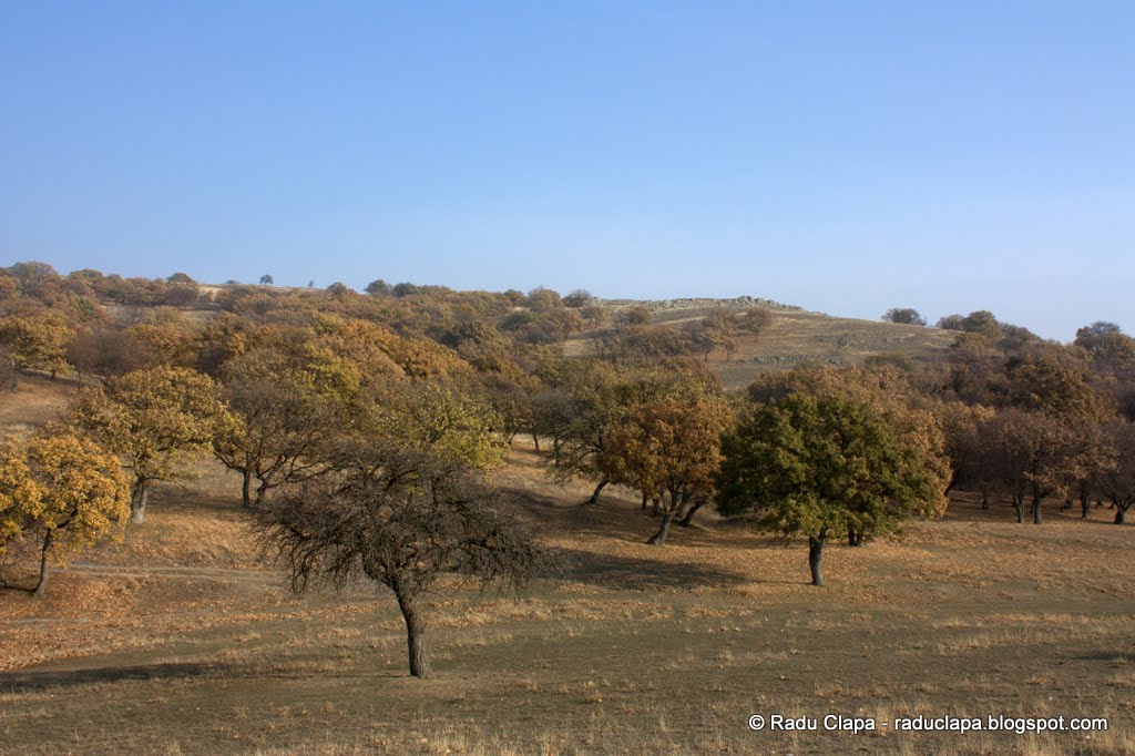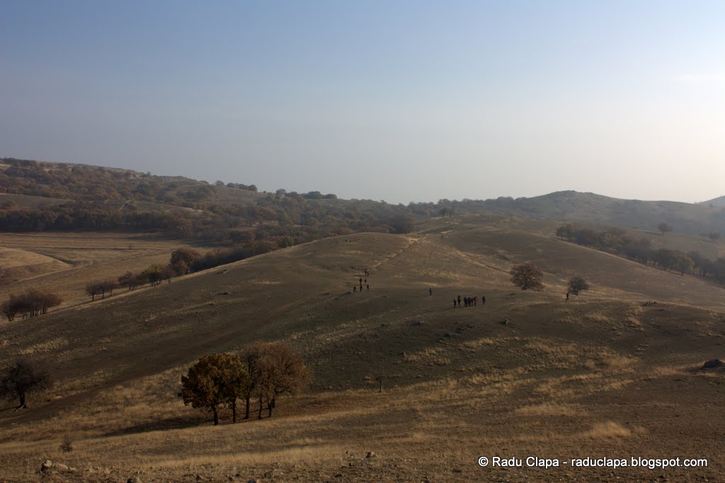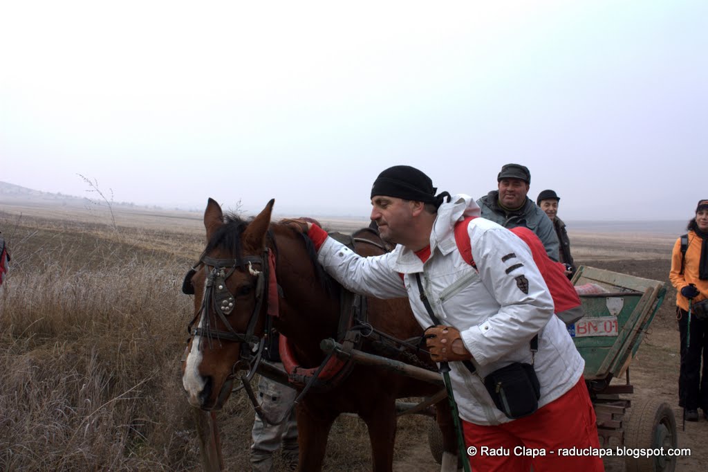 În scurt timp aveam să ne reîntâlnim cu nenea căruțaș de mai devreme. De data asta era parcat, și aștepta…. ce aștepta?? Nu contează. Ne-am oprit puțin pentru o regrupare, am mai schimbat câteva vorbe cu dânsul despre lupi și șacali, am aflat că lupii aduși să omoare șacalii au fost devorați ca niște pui fripți după postul mare. Ne povestea că a întâlnit o haită de șacali, că erau vreo douăzeci, dar ei nu sar la oameni… citând „și dracu fuge de oameni” De-o fi așa, de n-o fi…nu vreau să aflu…perspectiva unei întâlniri face-2-face cu un animal sălbatic carnivor care de obicei circulă în haită, nu prea mă încântă. Doar să fiu cu un grup de oameni mai mare decât numărul patrupedelor… Dar eu singur, contra unei haite….nu cred că jucăria aia de alungat câinii m-ar fi salvat