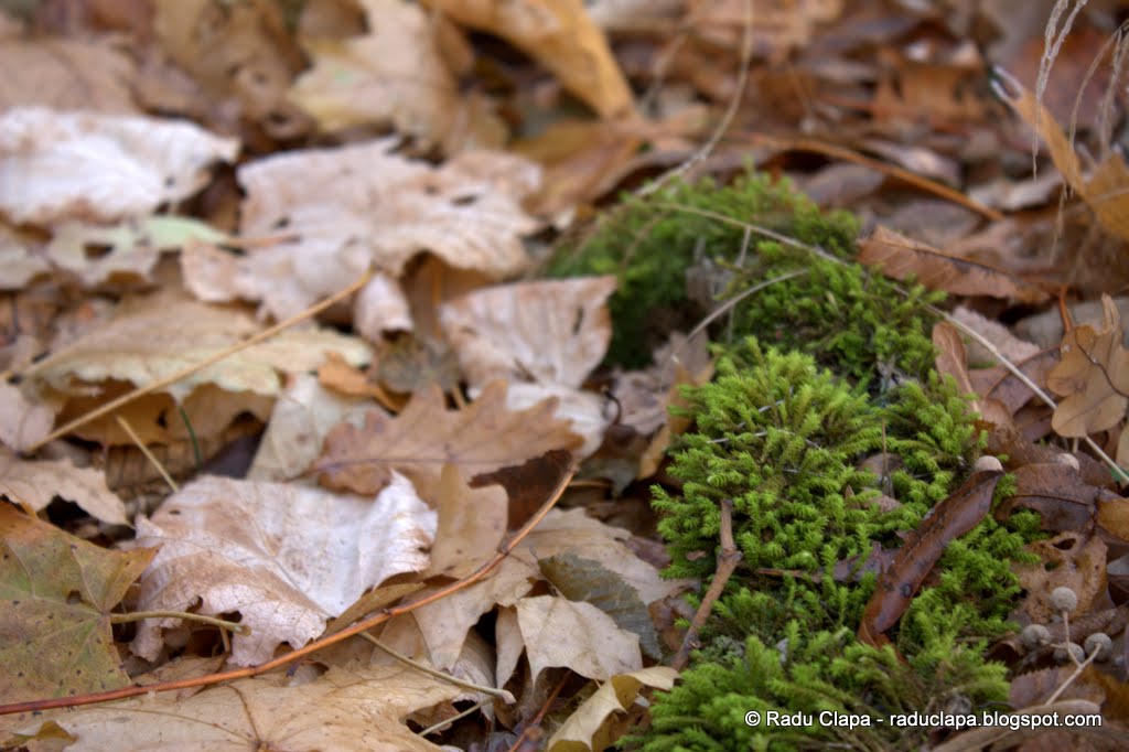 Ceața se mai risipise, dar atmosfera era încă încărcată de vapori și cerul era cenușiu. Aici, la 314m altitudine, când ceasul arăta ora 11.49 am găsit primele semne că suntem totuși la munte.