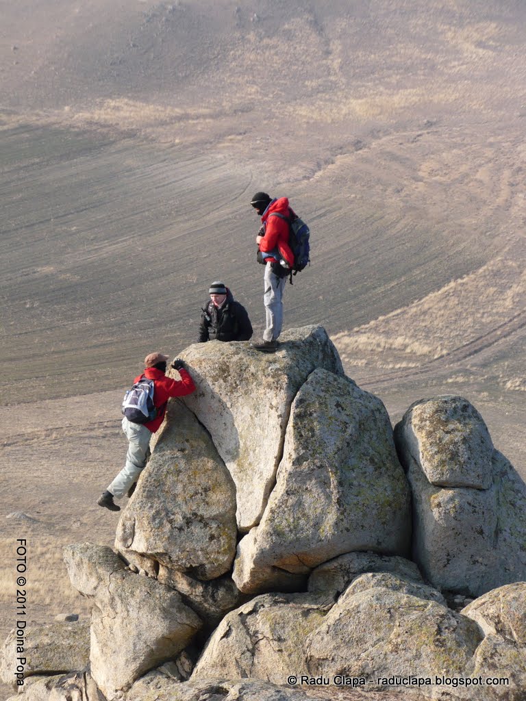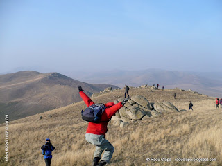 După ce am atins vârful am coborât și ne-am îndreptat spre locuri mai ferite de vânt. Un astfel de loc avea să ne fie loc de luat masa. Ne-am împrăștiat și ne-am grupat, am servit ce cărasem până acum în spate și apoi ne-am văzut de drum.