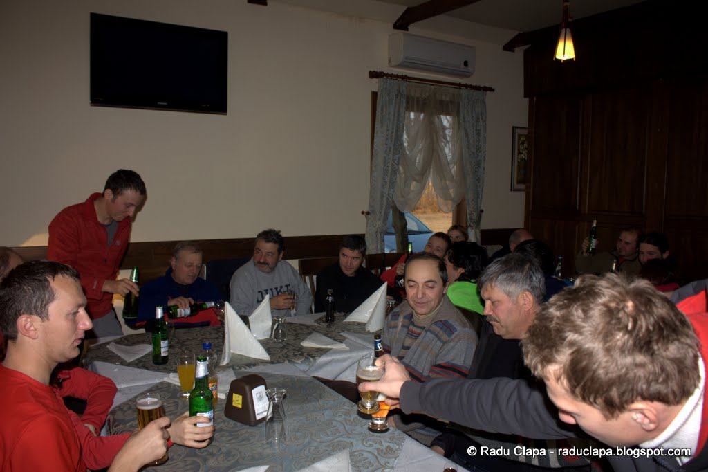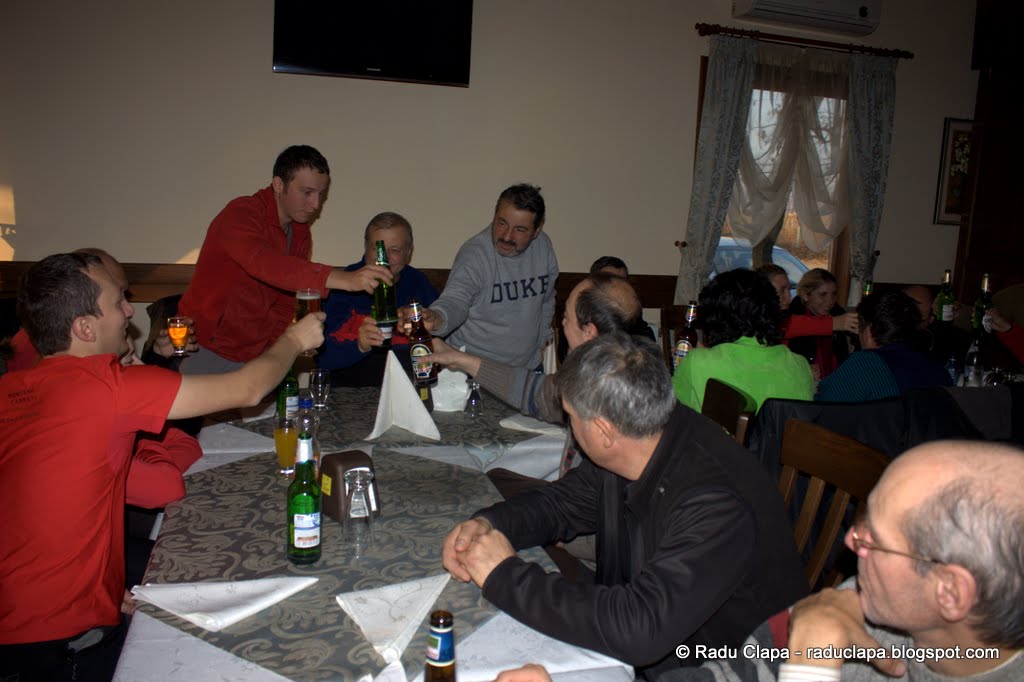 Cu mine i-a mers,că nu m-am aprins, dar știam că dacă vine Dan face ordine, așa că am așteptat… Bineînțeles că, am mai pus o masă și am stat cu toții. După vreo două împrumuturi de scaune de la mesele vecine, ne-am așezat cu toții, iar pe mine a picat păcatul să stau în capătul mesei… Nu ar fi fost nici o problemă, doar că altă cale de acces nu era, așa că trebuia să mă fac mic la fiecare trecere prin zonă a chelnerului și a celor care aveau nevoie la baie. La un moment dat am renunțat să mă așez până nu s-au terminat de perindat chelnerii.