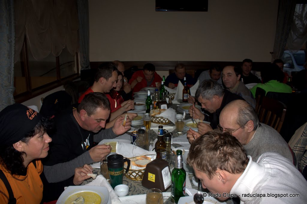 După perioada de așteptare tipică restaurantelor, ne-a sosit mâncarea și ne-am apucat să ciorbim supa…. să sorbim ciorba. A, dar nu toți… că isteții au adus o vacă în loc de burtă, așa că a mai durat până să vină porția lui Cătălin. Și ce haz s-a mai făcut pe seama lipsei burții 🙂 (vă dați seama sper că vorbesc despre o ciorbă de văcuță și o ciorbă de burtă)