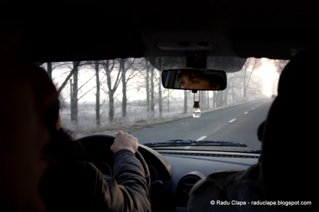 În primul rând fiindcă Doina era la volan, deci, concentrată pe șofat, nu am avut cu cine să fac karaoke pe melodiile din playlist, mai apoi, stăteam cam în spate – vorbim de un MCV în care eu cu Mircea stăteam pe locurile 6 și 7. A fost pentru amândoi o premieră, dar dezavantajul era că nu prea auzeam nici muzica nici conversațiile din față. Eram cam izolați. De asemenea mi se făcuse puțin rău din cauza poziționării. Nu cred că am rău de mașină (sau de mișcare) dar mi se face rău dacă stau în spate din cauza suspensiilor. Întotdeauna în spate mașina sare mai tare, la fel ca la microbuze. Dacă stau în față nu am nici o problemă, între osii e ok, dar dacă stau în dreptul sau după osia din spate, sunt șanse să nu rezist tot drumul. Din fericire nu am avut mari probleme de data asta, fiindcă am avut destule pauze și am mai deschis geamul din când în când.Alt dezavantaj al poziționării a fost faptul că nu aveam destulă vizibilitate pentru a face poze, geamurile fiind mici, aburite și cu deschidere parțială.