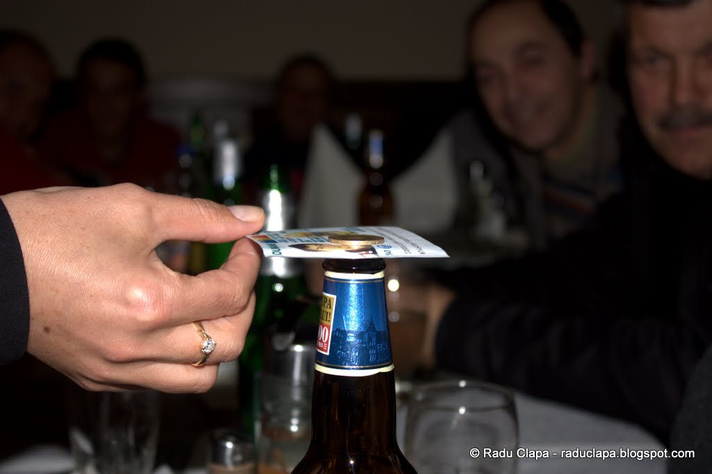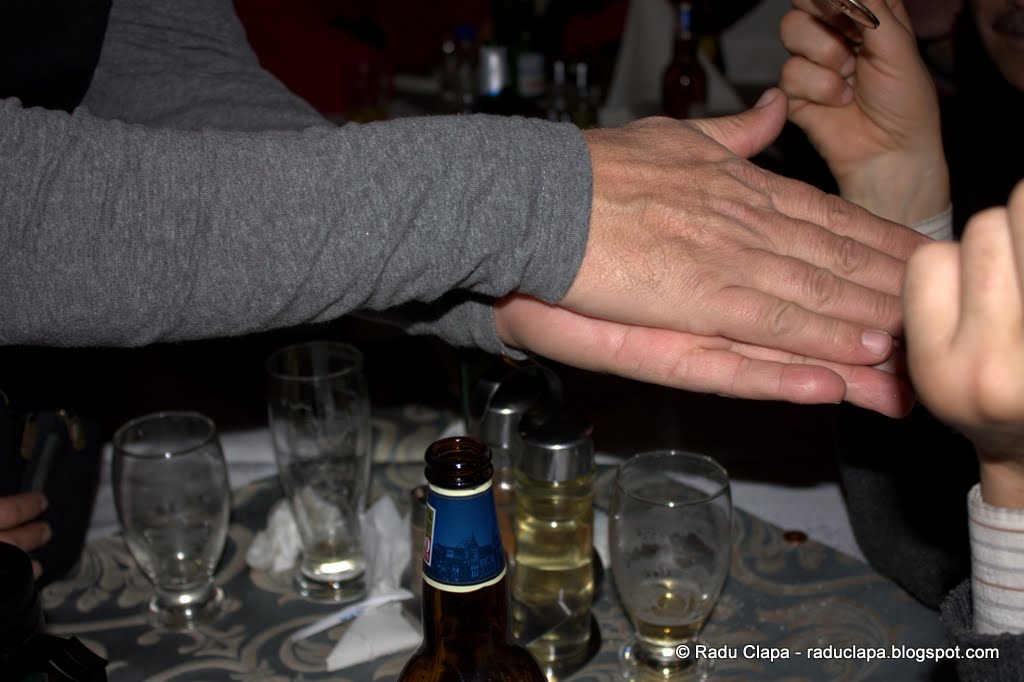 După masă, a urmat perioada tipică restaurantelor, de așteptare a notei de plată, timp în care ne-am distrat cu glume și probe de iscusință….(nu, ăla nu era buletinul meu….doar o copie de hârtie).