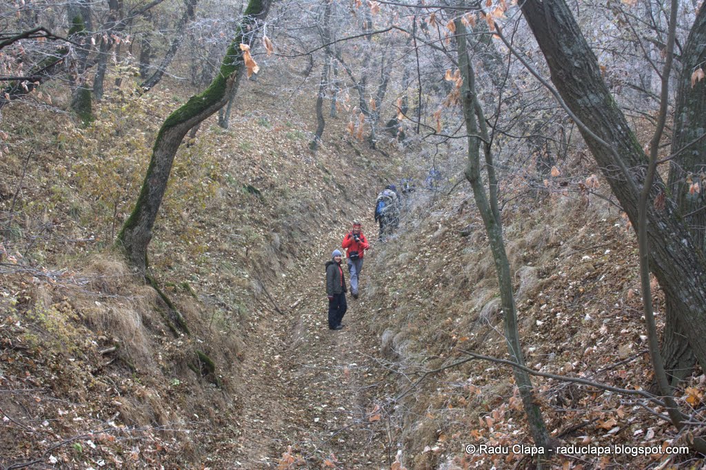 Nu am înțeles de ce, dar traseul urma apoi un fel de tranșeu prin pădure… nu părea să fie o albie a unui fost râu, ba părea circulată de căruțe, sau ceva vehicule cu anvelope, să fi fost oare atât de circulat drumul ăsta încât s-a erodat pământul?