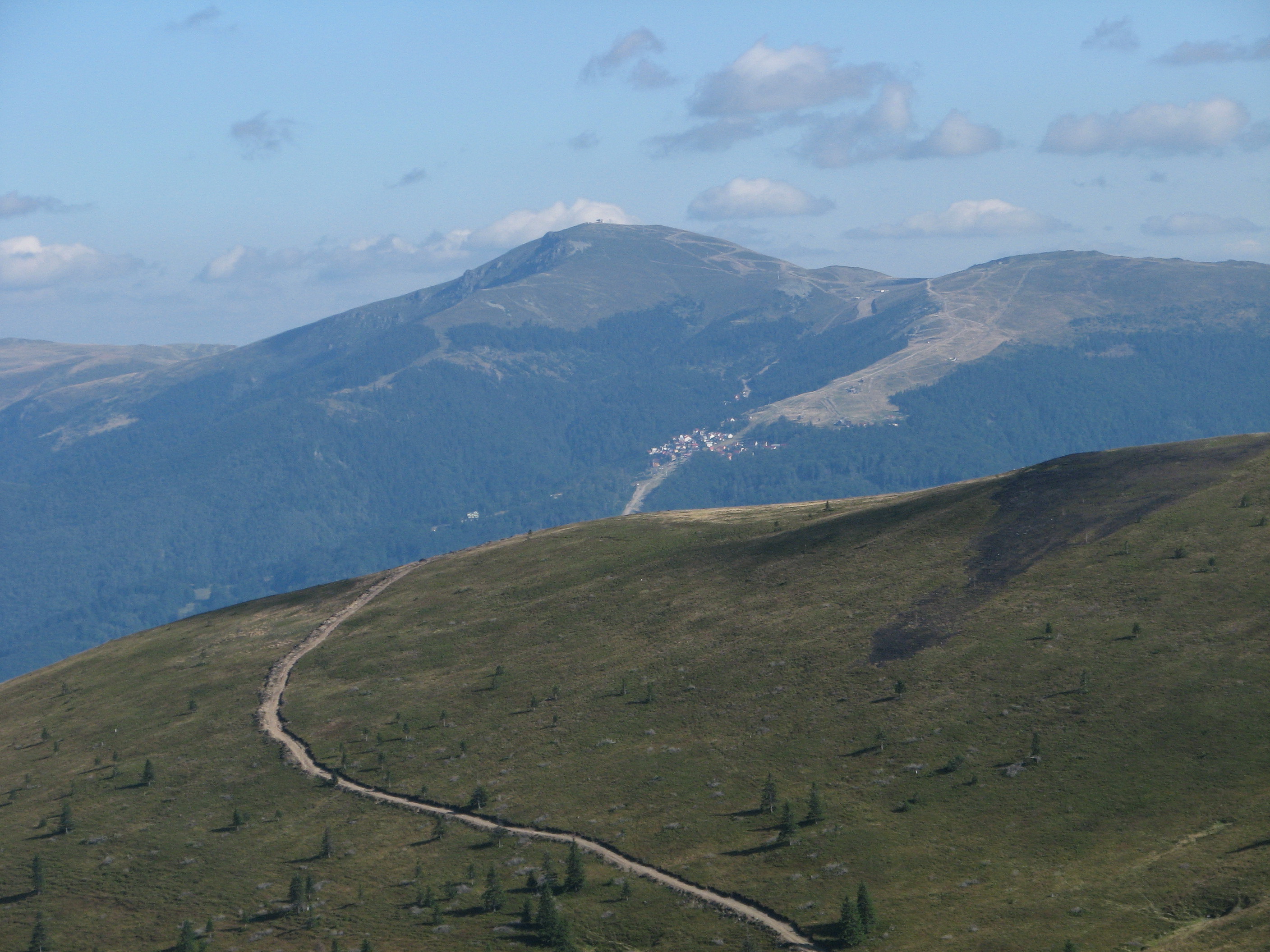 După poiana Cornetului facem stânga pe culmea Muncelului, pe un bun drum forestier ce traversează o frumoasă pădure de fag. E o pădure sănătoasă, neîmbolnăvită încă de drujbărită, boală de origine austriacă ce afectează puternic marea majoritate a pădurilor din România.